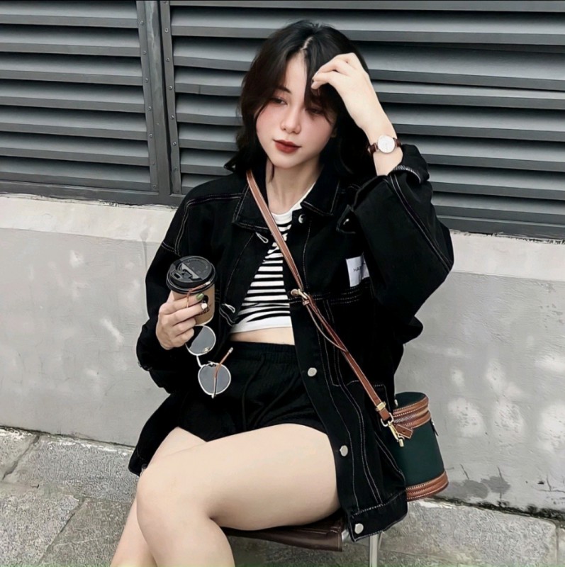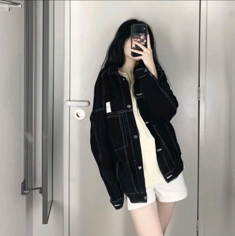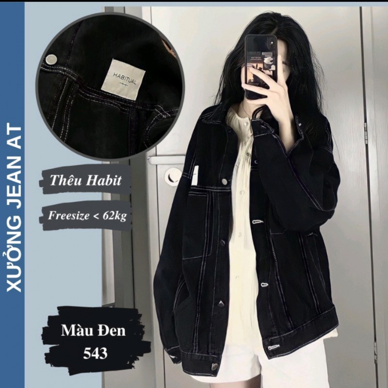 HƯỚNG DẪN MUA HÀNG : Áo Khoác Jean Nữ Form Rộng UNISEX Nam Nữ Màu Đen Chỉ Nổi - Áo Khoác Bò Nữ Thêu Chữ Habit Freesize Dưới 62kg - 543.1