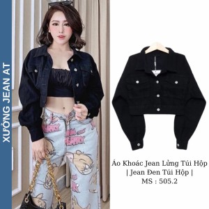 Áo Khoác Jean Nữ Dáng Lửng Túi Hộp Màu Đen Cá Tính Năng Động 505.2