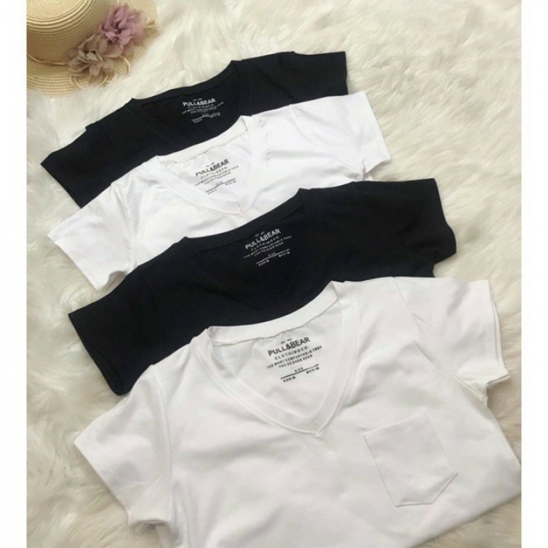 Áo Thun Nữ Cổ Tim Trắng và Đen