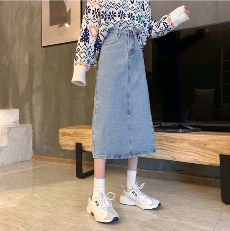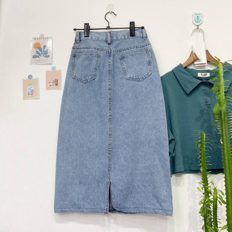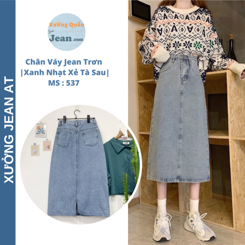 THÔNG TIN SẢN PHẨM : Chân Váy Jean Dài Midi Xẻ Tà Sau Lưng Cao, Chân Váy Bò Dài Cạp Cao Xanh Nhạt Cực Xinh 537