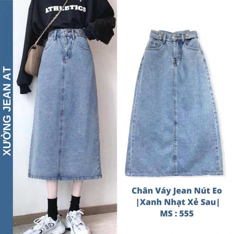 HƯỚNG DẪN MUA HÀNG : Chân Váy Jean Dài Xanh Nhạt Phối Nút Eo - Xẻ Tà Sau 555