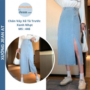 Chân Váy Jean Dài Lưng Cao Xẻ Tà Trước Dáng Chữ A Màu Xanh Nhạt - 446.1