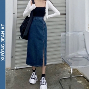 Chân Váy Jean Dài Midi Xẻ Tà Sau Lưng Cao - 537