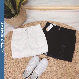 Chân Váy Jean Tua Rua 2 Màu Trắng Và Đen