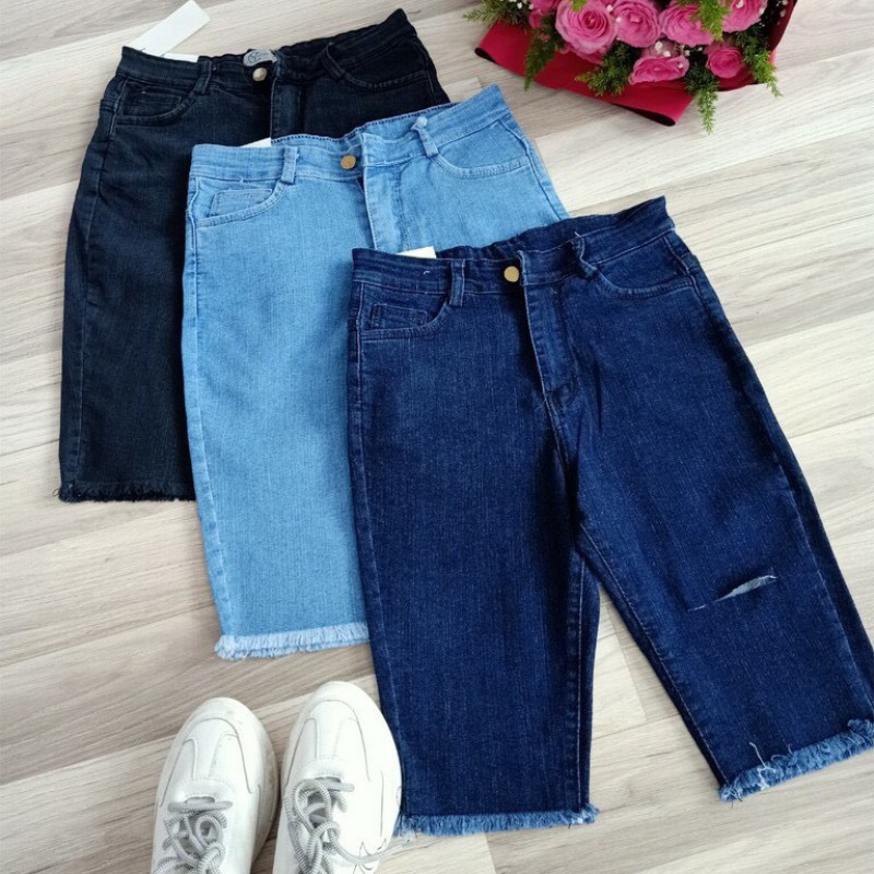 - Những kiểu quần ngố jean Đen, xanh như mẫu dưới đây cũng dịu dàng thanh lịch đầy sức trẻ. Bạn có thể diện đồ này đi chơi cùng bạn bè, đi làm ở những ngày cuối tuần tự do. Những set đồ với quần ngố jean như thế này bạn nên kết hợp với những đôi giày thể thao hợp tone màu sẽ giúp bạn trở trên năng động hơn.