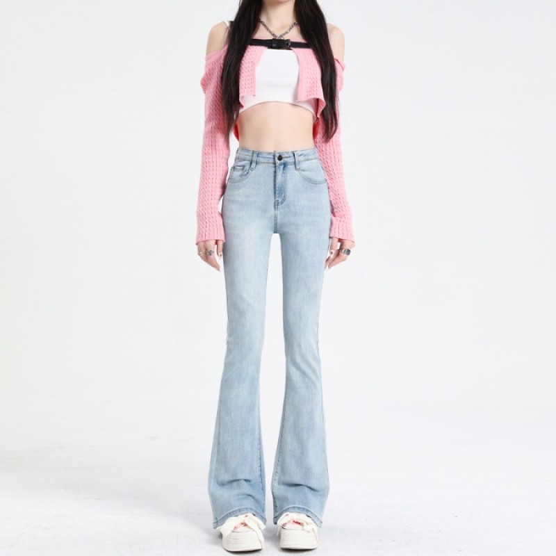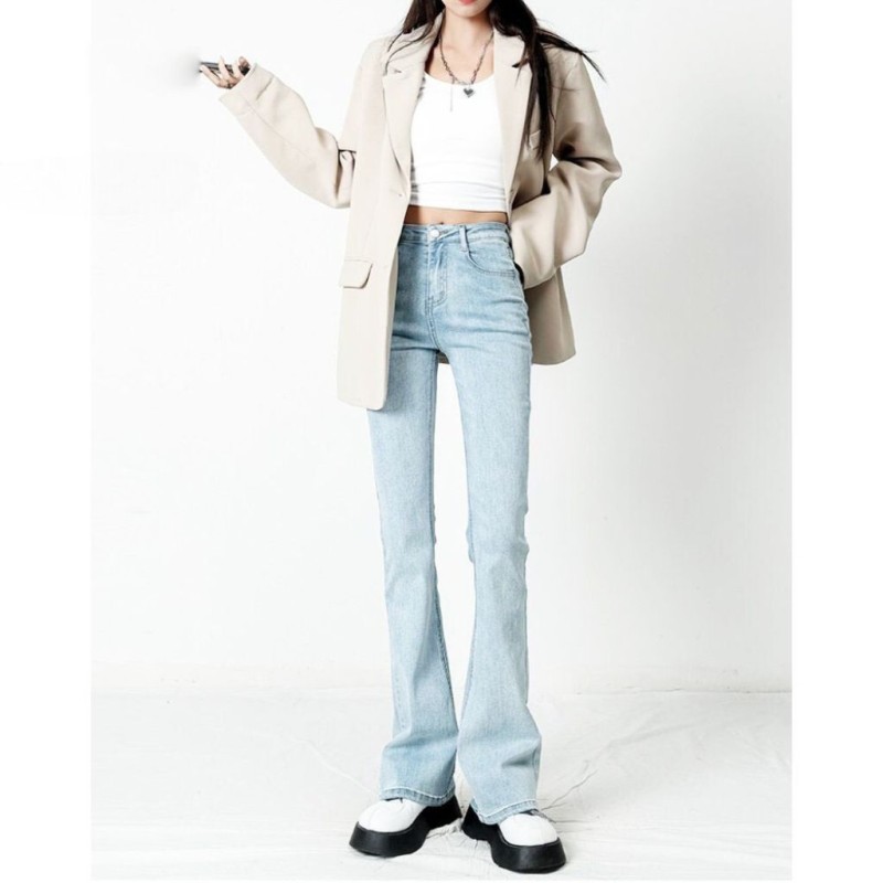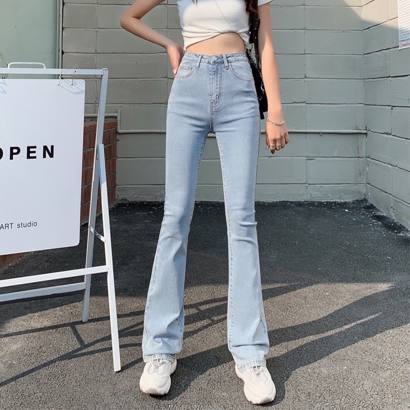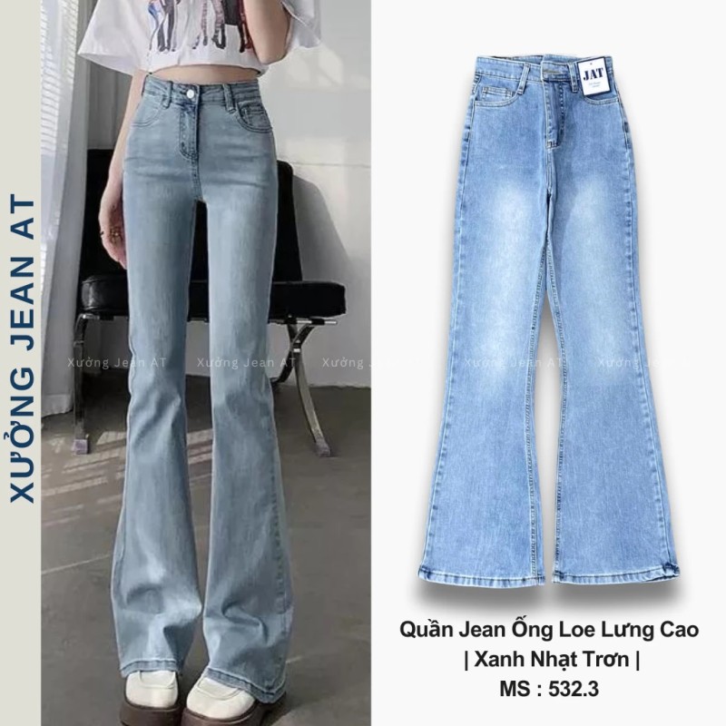 Quần Jean Nữ Ống Loe Lưng Cao Màu Xanh Nhạt Dáng Ôm Cạp Cao Ống Đứng Form Hàn 532.3