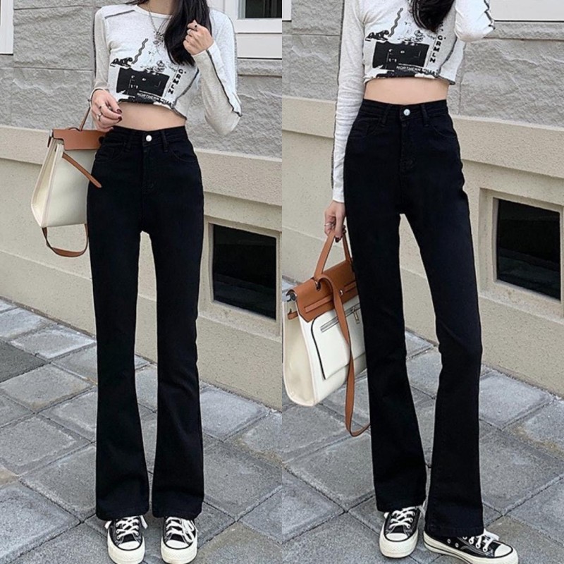 HƯỚNG DẪN MUA HÀNG : Quần Jean Nữ Ống Loe Lưng Cao Màu Đen Dáng Ôm Cạp Cao Ống Đứng Form Hàn 532.2