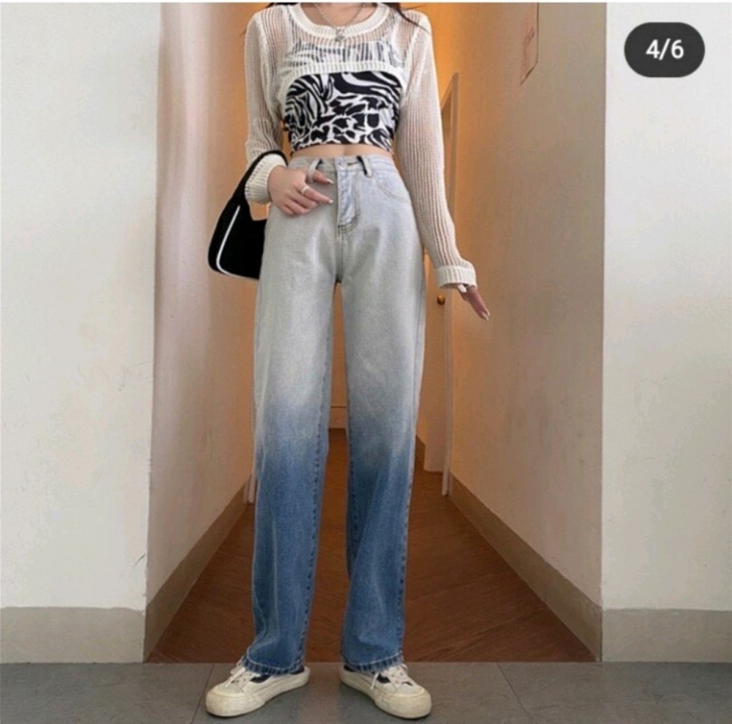 - Quần Bò Ống Rộng Loang Màu