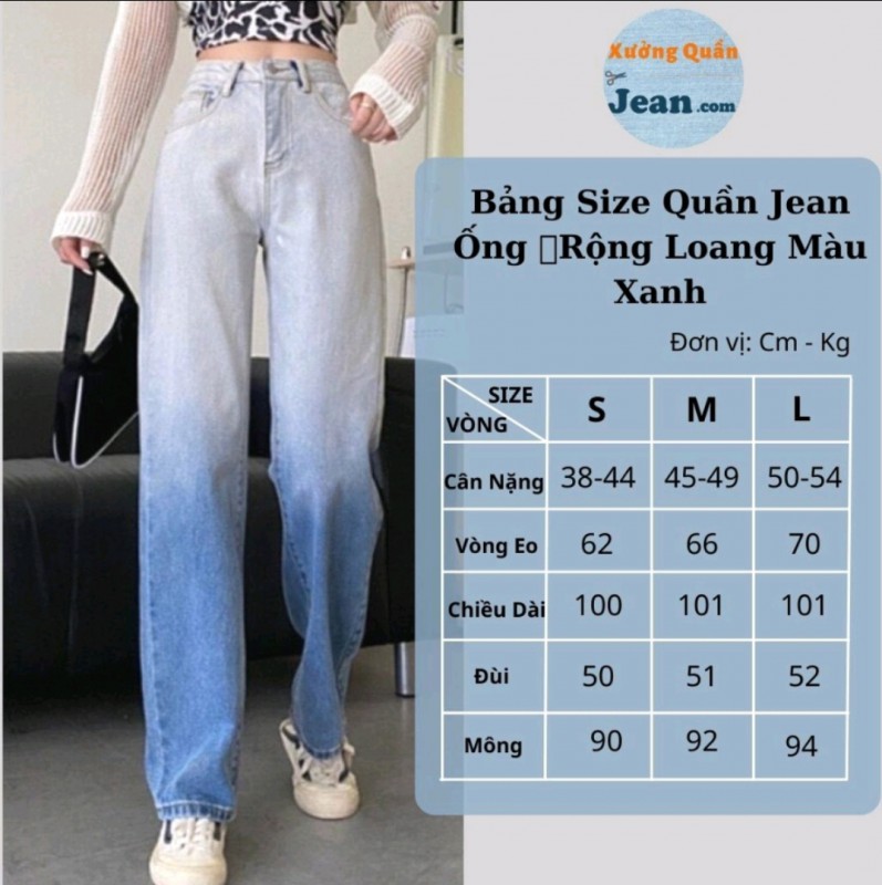 HƯỚNG DẪN MUA HÀNG : Quần Jean Nữ Ống Rộng Loang Màu Xanh Chất Bò Dày Dặn Phong Cách Hàn Quốc Dài 100cm - 301.2
