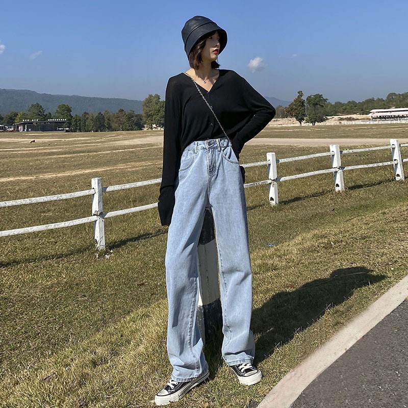Quần Jean Nữ Ống Rộng Lưng Cao Dáng Suông Phong Cách Ulzzang Cực Chất Màu Xanh Nhạt 3 size SML 420.1