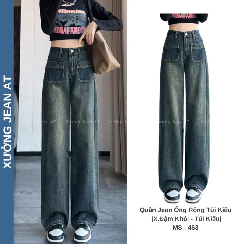 HƯỚNG DẪN MUA HÀNG : Quần Jean Nữ Ống Rộng Lưng Cao Màu Xanh Wash Bụi Túi Kiểu Phong Cách Retro 463