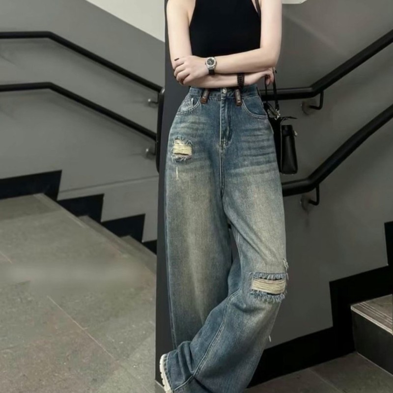 Mang phong cách retro của những năm thập niên 90, Quần Jean Nữ Ống Rộng Wash Bụi Rách rất được lòng các cô nàng khi style cổ điển đang lên ngôi trong thời gian gần đây.