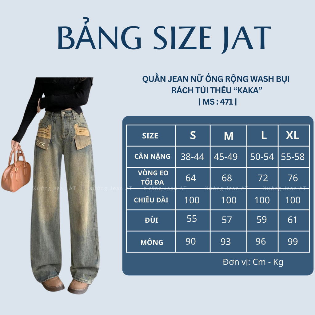 HƯỚNG DẪN MUA HÀNG : Quần Jean Nữ Ống Suông Rộng Wash Bụi Phối Túi Rách Thêu Chữ KAKA Phong Cách Retro Cực Chất 471