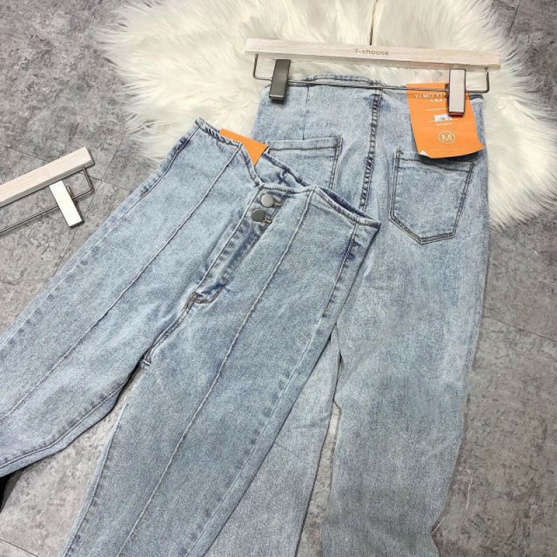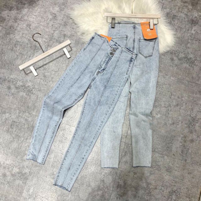 THÔNG TIN SẢN PHẨM : Quần Jeans Nữ Gân Lưng Cao 2 Nút