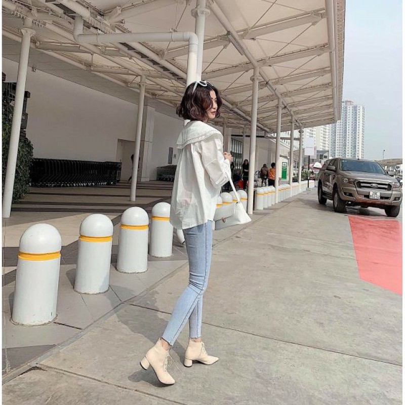 Mẫu có 2 nút trước , Kiểu ống quần gân Thời TRang