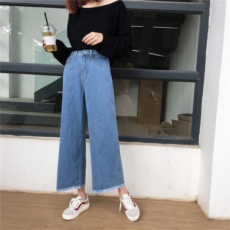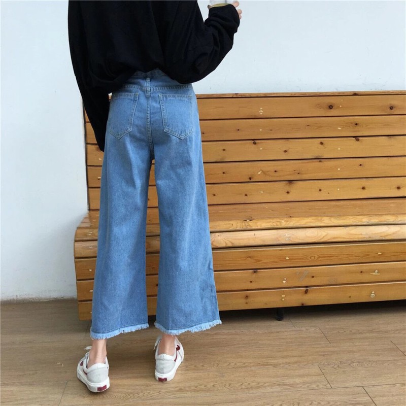 ❌ THÔNG TIN SẢN PHẨM : Quần Jeans Ống Rộng Trơn Màu Xanh Đậm Rách Gấu Lưng Cao Trẻ Trung Năng Động 50.2