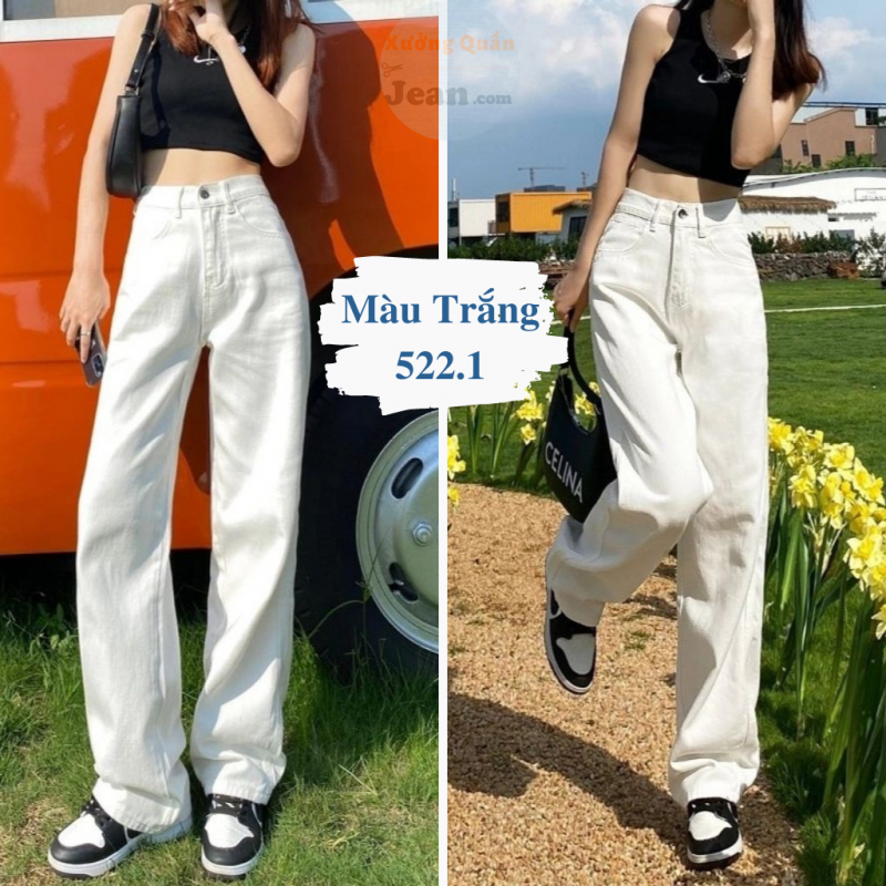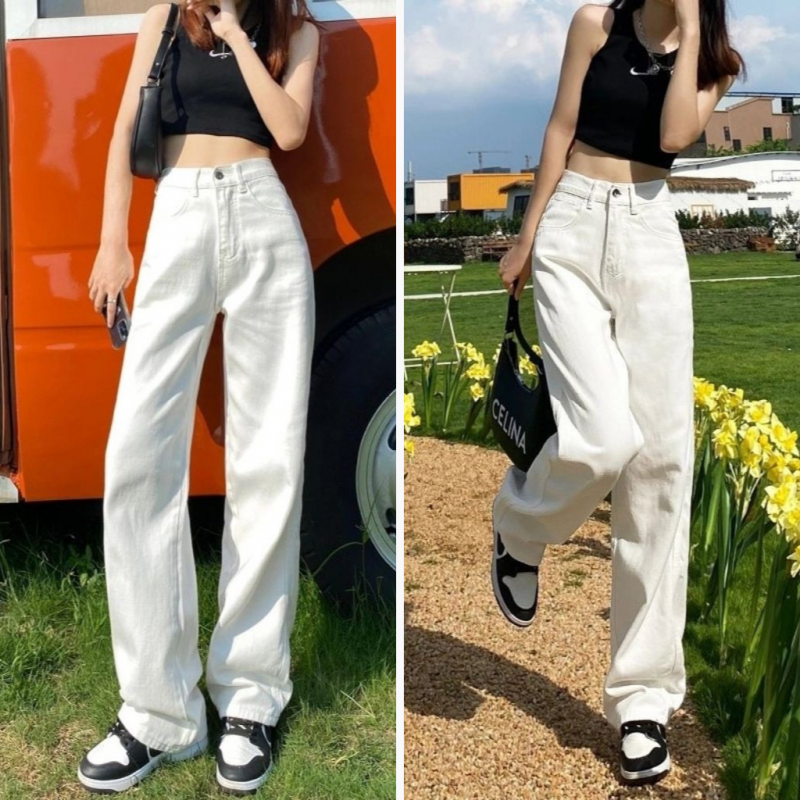 ❌ HƯỚNG DẪN MUA HÀNG : Quần Kaki Jean Nữ Ống Rộng Lưng Cao Phong Cách Ulzzang Màu Trắng Trơn 522
