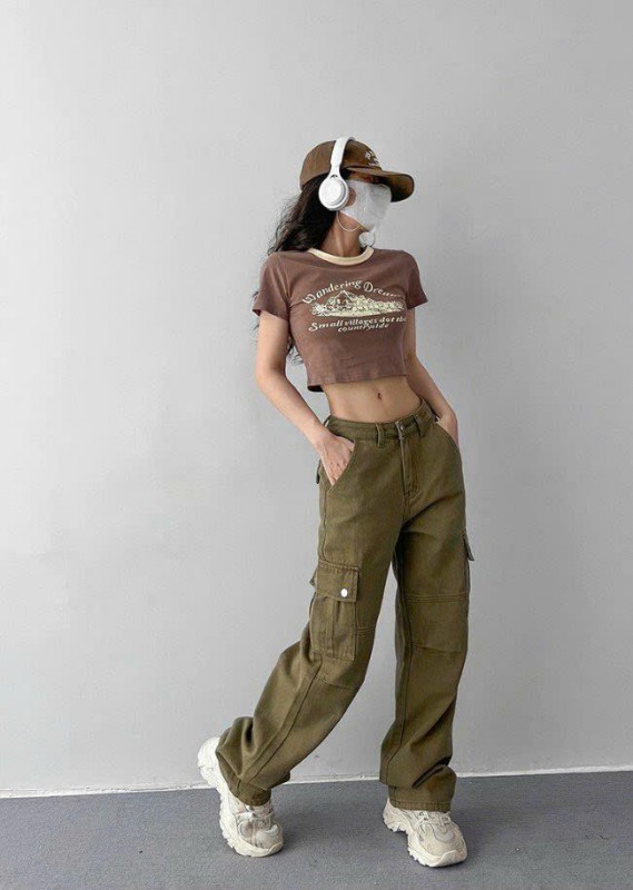 HƯỚNG DẪN MUA HÀNG : Quần Kaki Nữ Ống Rộng Lưng Cao 2 Túi Hộp Cực Cá Tính Màu Rêu Form Trơn Nam Nữ Unisex 570.3
