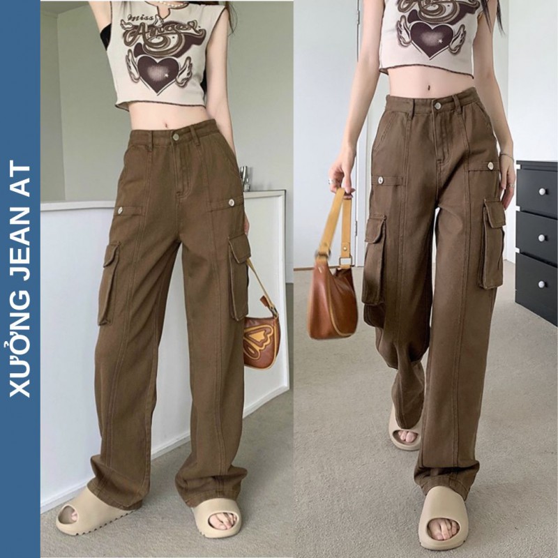 HƯỚNG DẪN MUA HÀNG : Quần Kaki Nữ Ống Rộng Túi Hộp Cargo Phối Gân Giữa Phong Cách Y2K Màu Nâu 568.1