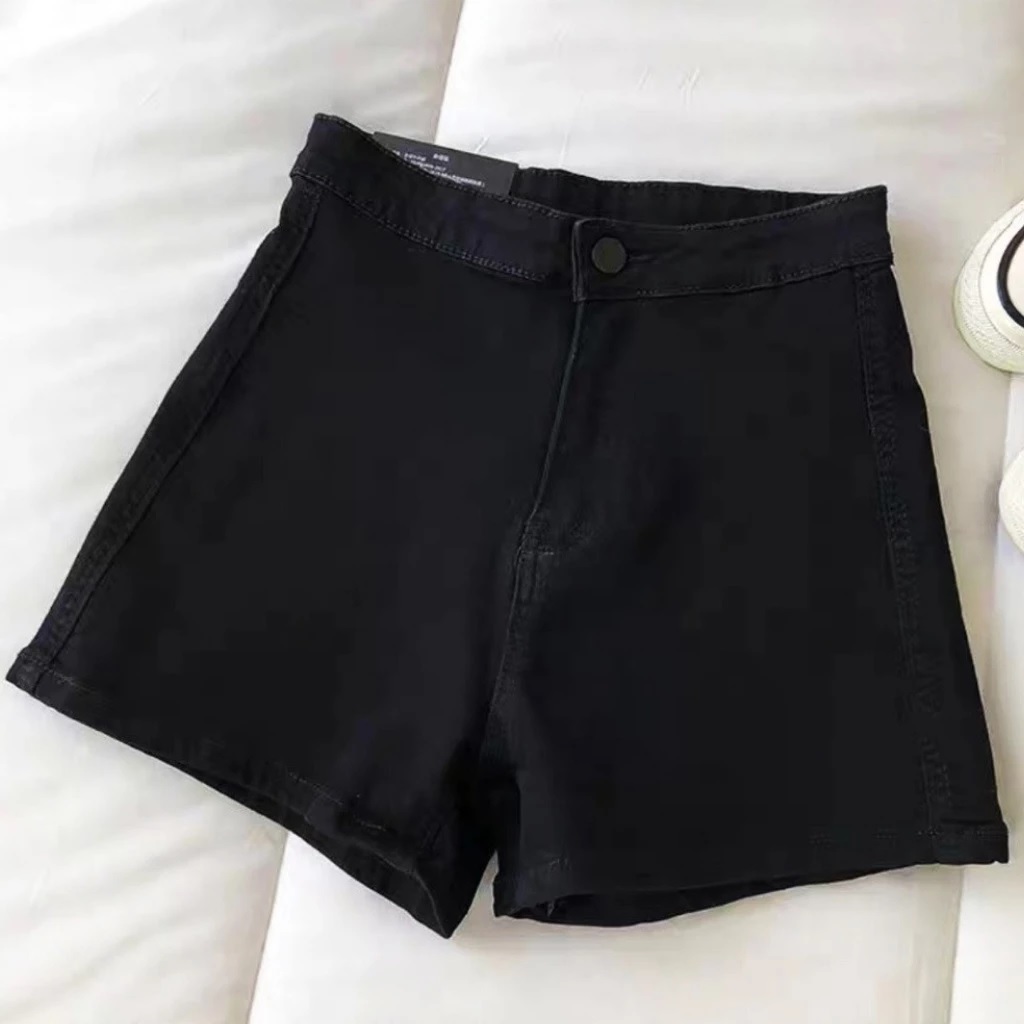 THÔNG TIN SẢN PHẨM : Quần Short Kaki Nữ Lưng Cao Không Túi Siêu Co Giãn Màu Đen Basic 508.2