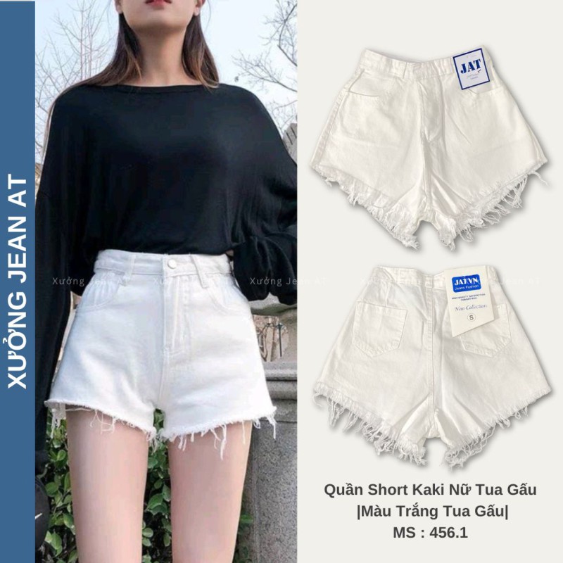 HƯỚNG DẪN MUA HÀNG : Quần Short Nữ Rách Gấu Tua Rua Co Dãn Chất Kaki Mịn Đẹp Màu Trắng 456.1