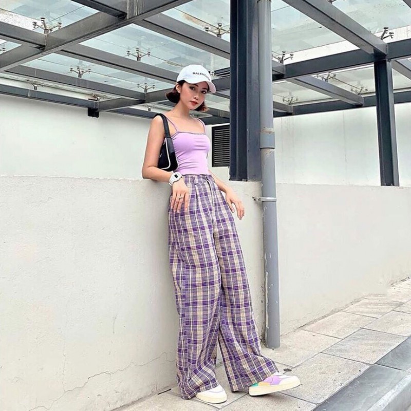 Quần Sọc Caro Nữ Ống Rộng Hack Chiều Cao Dài 105cm