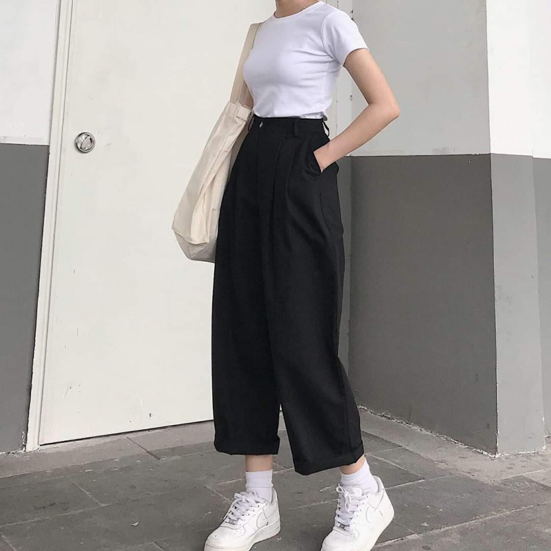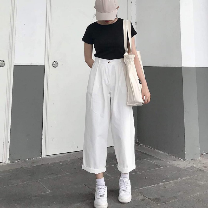 Quần Ulzzang Ống Suông Rộng Lưng Thun