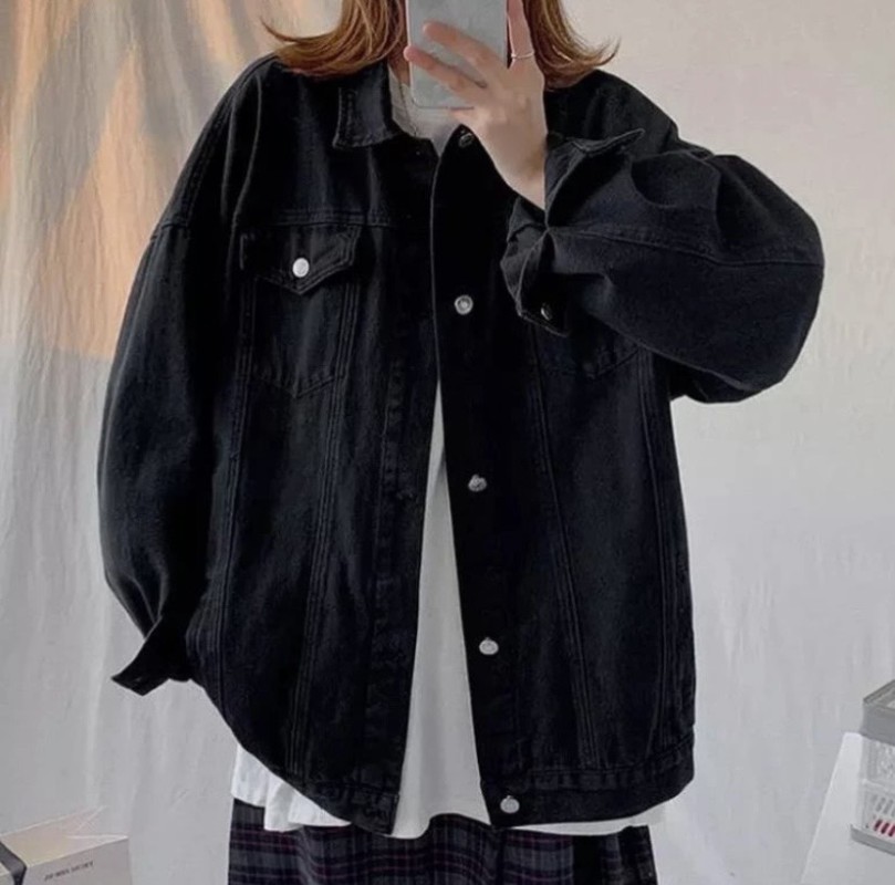 THÔNG TIN SẢN PHẨM : Áo Khoác Jean Form Rộng UNISEX Nam Nữ Màu Đen Trơn Phong Cách Hàn Quốc Cá Tính 545.1