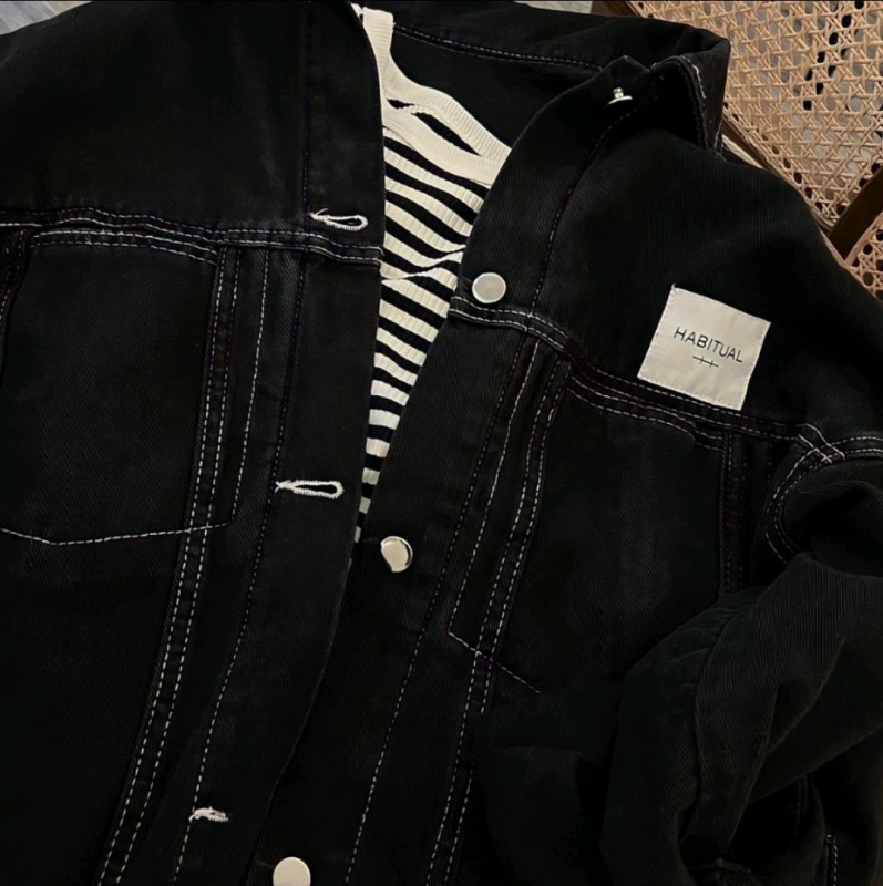THÔNG TIN SẢN PHẨM : Áo Khoác Jean Nữ Form Rộng UNISEX Nam Nữ Màu Đen Chỉ Nổi - Áo Khoác Bò Nữ Thêu Chữ Habit Freesize Dưới 62kg - 543.1