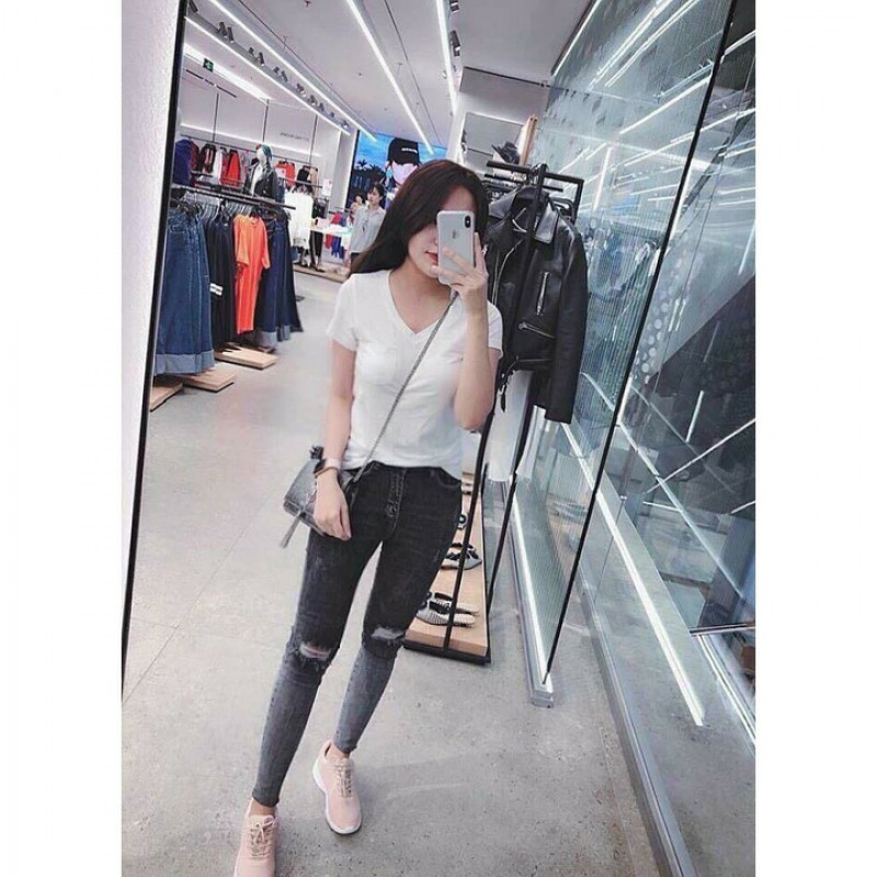 Áo Thun Nữ Cổ Tim Trắng và Đen