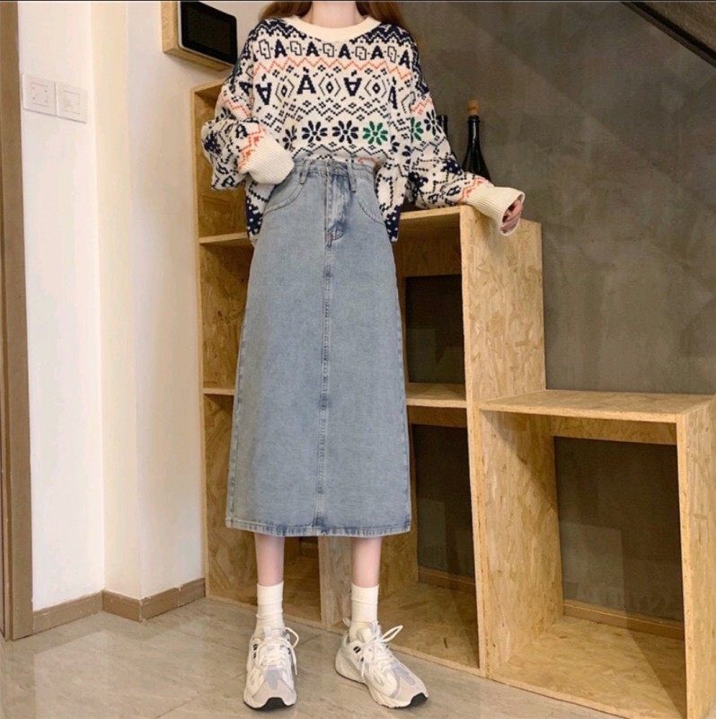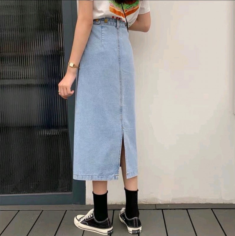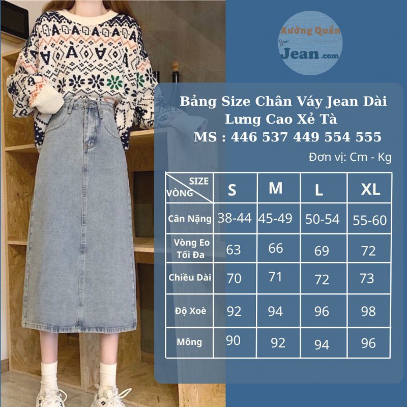 THÔNG TIN SẢN PHẨM : Chân Váy Jean Dài Midi Xẻ Tà Sau Lưng Cao, Chân Váy Bò Dài Cạp Cao Xanh Nhạt Cực Xinh 537