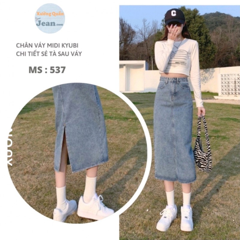 Chân Váy Jean Dài Midi Xẻ Tà Sau Lưng Cao - 537