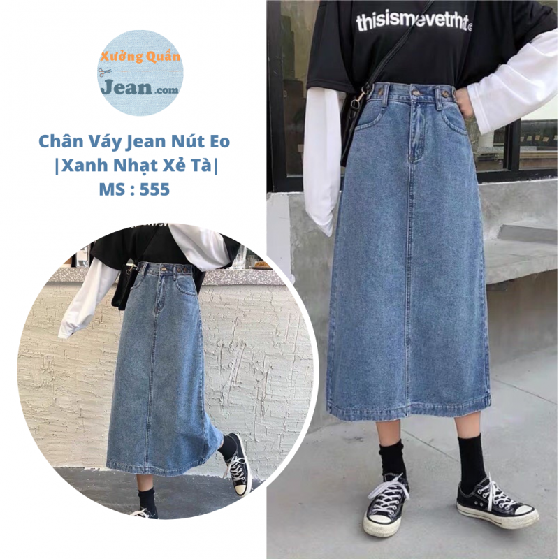 HƯỚNG DẪN MUA HÀNG : Chân Váy Jean Dài Xanh Nhạt Phối Nút Eo - Xẻ Tà Sau 555