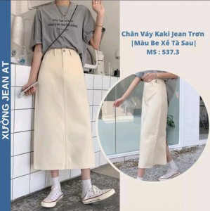 Chân Váy Jean Dài Midi Xẻ Tà Sau Lưng Cao - 537