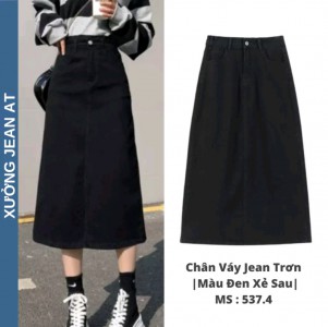 Chân Váy Kaki Jean Dài Màu Đen Chỉ Nổi Lưng Thun Xẻ Tà Sau 554