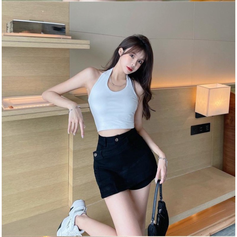 HƯỚNG DẪN MUA HÀNG : Quần Giả Váy Màu Đen Lưng Cao Cạp Chéo Chất Kaki Dày Dặn Phong Cách Hàn Quốc 444.2