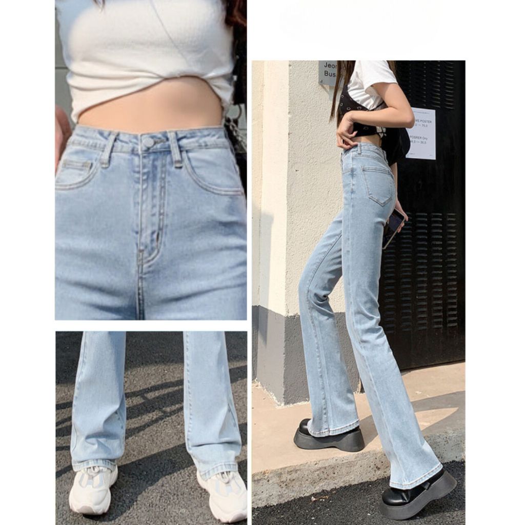 HƯỚNG DẪN MUA HÀNG : Quần Jean Nữ Ống Loe Lưng Cao Màu Xanh Nhạt Dáng Ôm Cạp Cao Ống Đứng Form Hàn 532.3