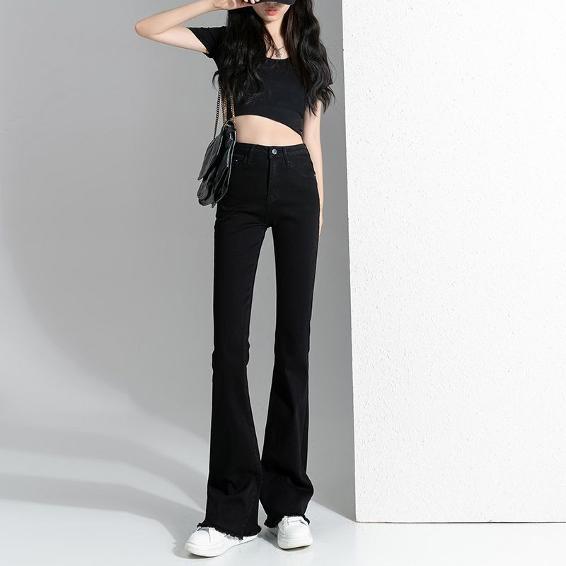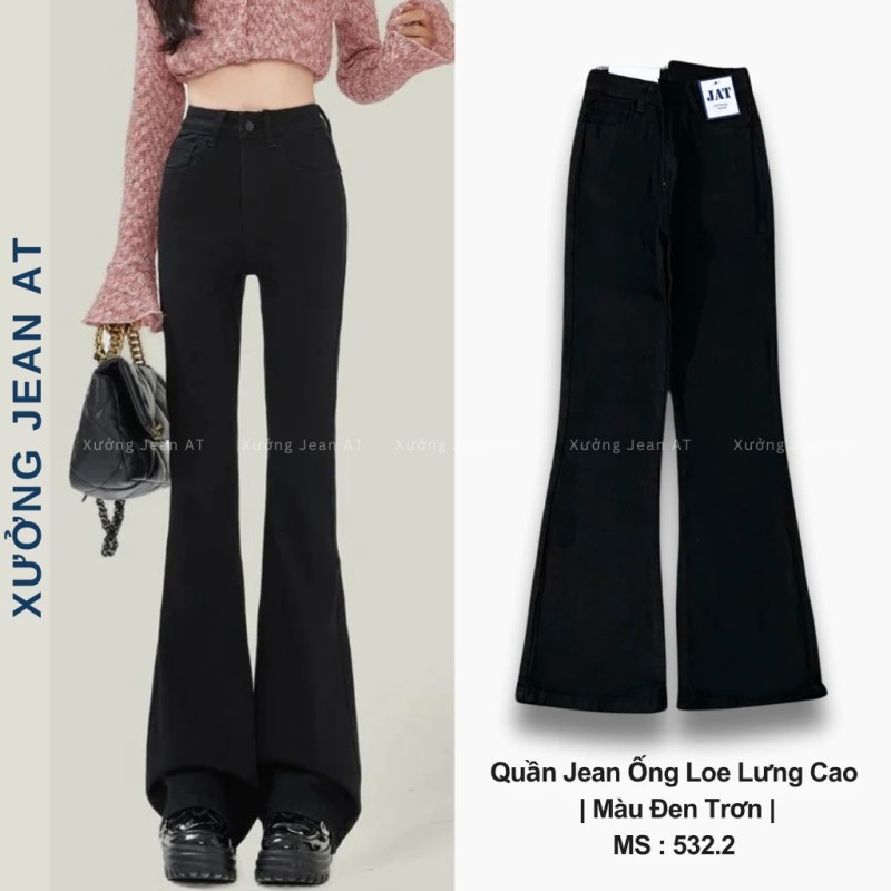 Quần Jean Nữ Ống Loe Lưng Cao Màu Đen Dáng Ôm Cạp Cao Ống Đứng Form Hàn 532.2