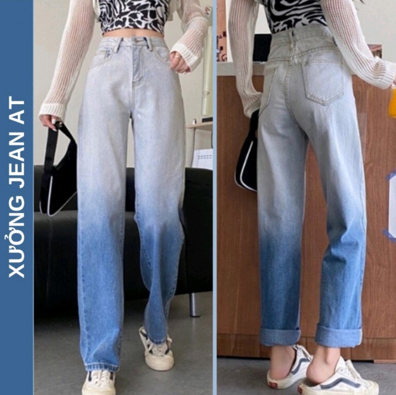 HƯỚNG DẪN MUA HÀNG : Quần Jean Nữ Ống Rộng Loang Màu Xanh Chất Bò Dày Dặn Phong Cách Hàn Quốc Dài 100cm - 301.2