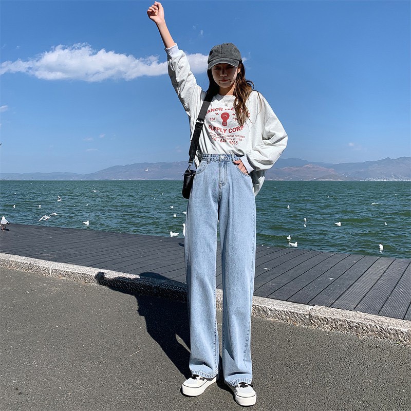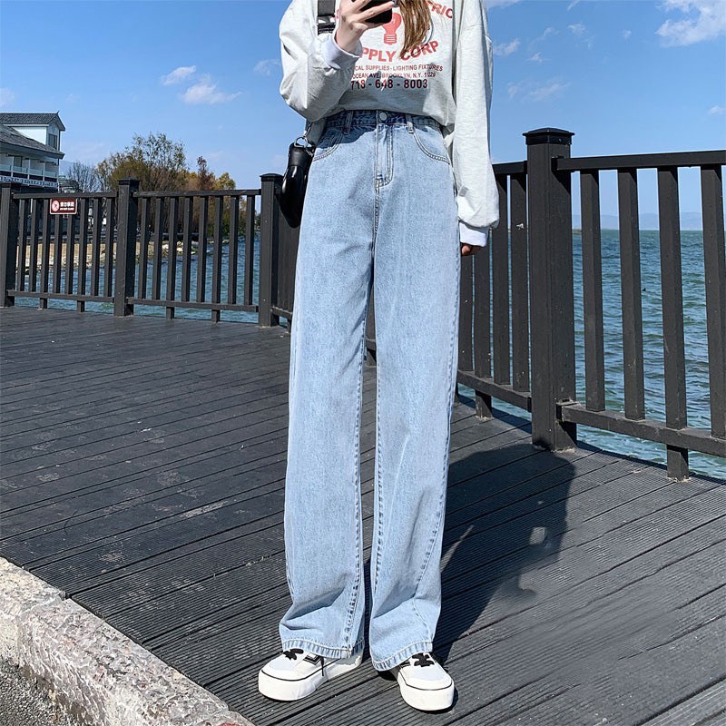 Quần Jean Nữ Ống Rộng Lưng Cao Dáng Suông Phong Cách Ulzzang Cực Chất Màu Xanh Nhạt 3 size SML 420.1