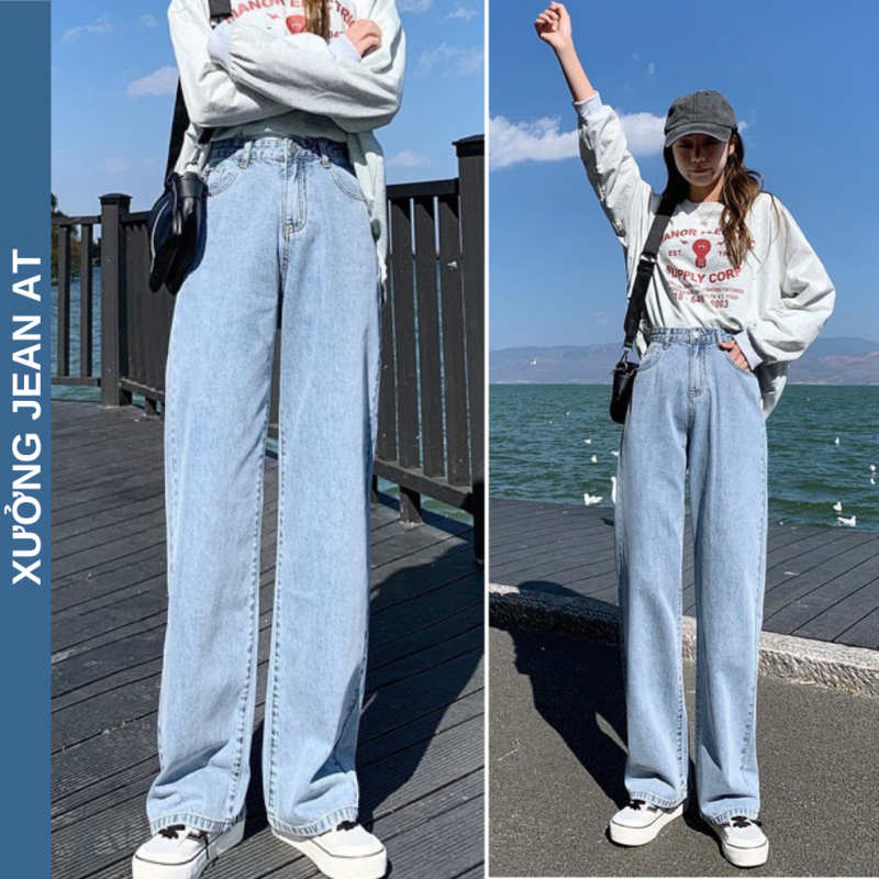Quần Jean Nữ Ống Rộng Lưng Cao Dáng Suông Phong Cách Ulzzang Cực Chất Màu Xanh Nhạt 3 size SML 420