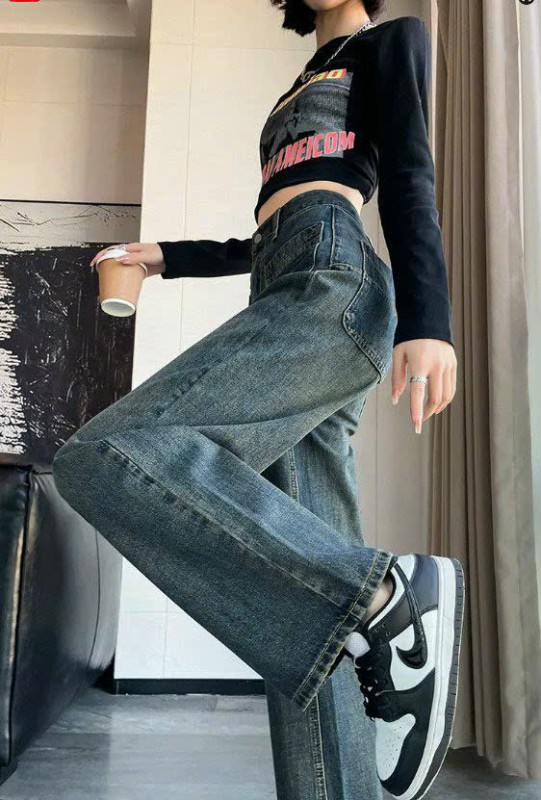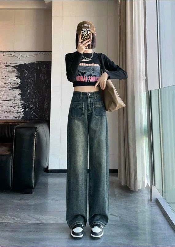 HƯỚNG DẪN MUA HÀNG : Quần Jean Nữ Ống Rộng Lưng Cao Màu Xanh Wash Bụi Túi Kiểu Phong Cách Retro 463