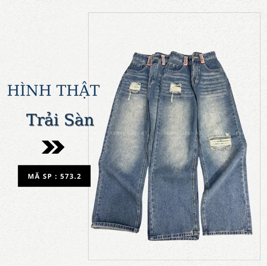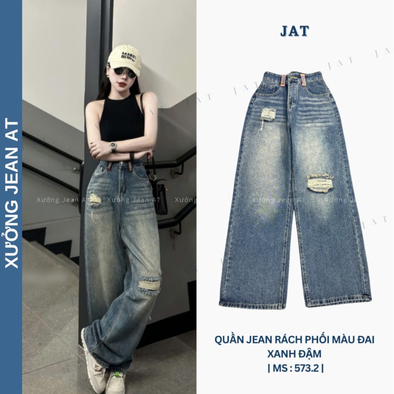 ❌ THÔNG TIN SẢN PHẨM : Quần Jean Nữ Ống Rộng Xanh Đậm Wash Bụi Rách Phối Màu Đai Kiểu Phía Trước Phong Cách Hàn Quốc 573.2