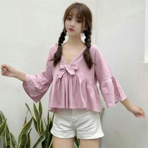 Quần Kaki Nữ Ống Rộng Trắng Thêu Nơ Hồng Lưng Cao Dáng Suông Dễ Thương Phong Cách Hàn Quốc 470.2
