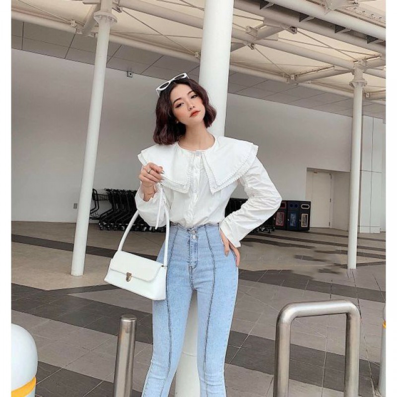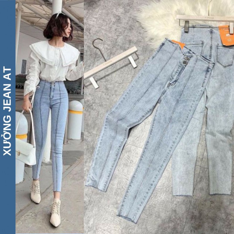 Quần Jeans Nữ Gân Lưng Cao 2 Nút