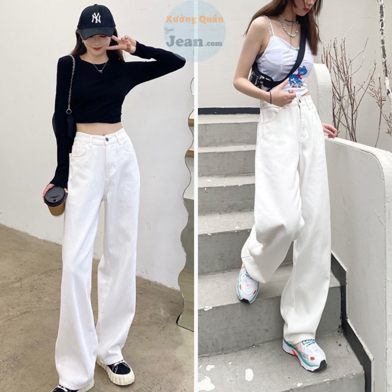- Kaki Ống Rộng Trắng Trơn