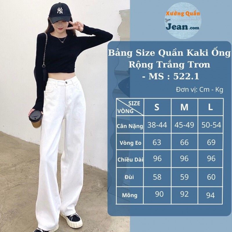 ❌ THÔNG TIN SẢN PHẨM : Quần Kaki Jean Nữ Ống Rộng Lưng Cao Phong Cách Ulzzang Màu Trắng Trơn 522