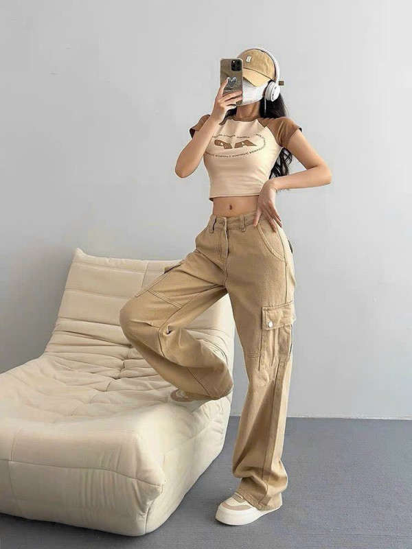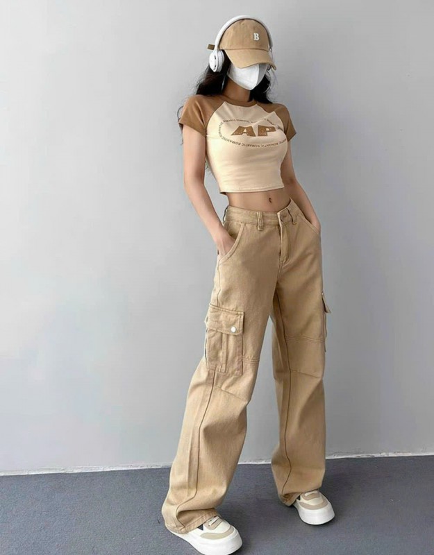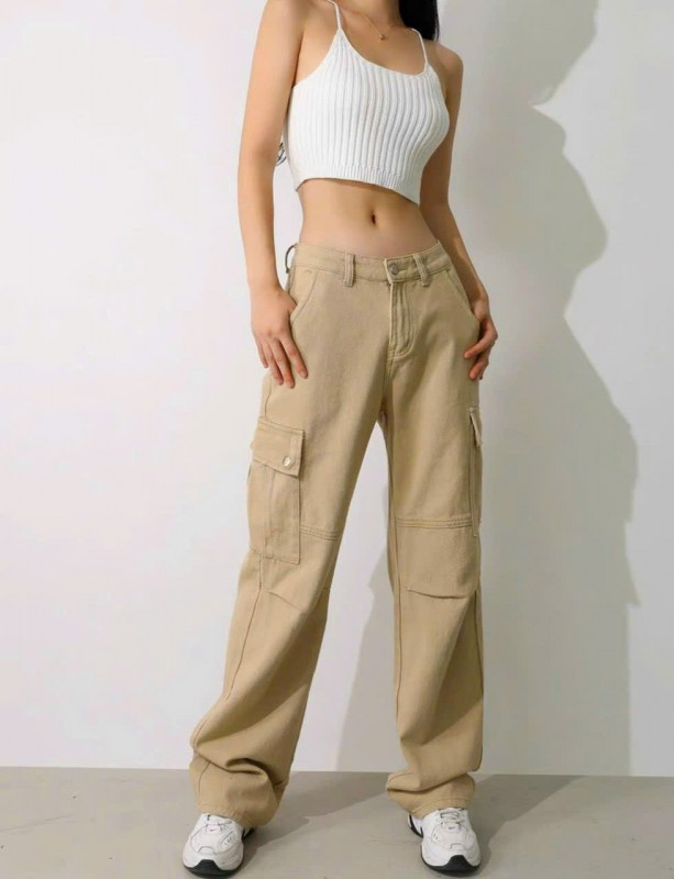- Quần Kaki Nữ Ống Rộng Túi Hộp