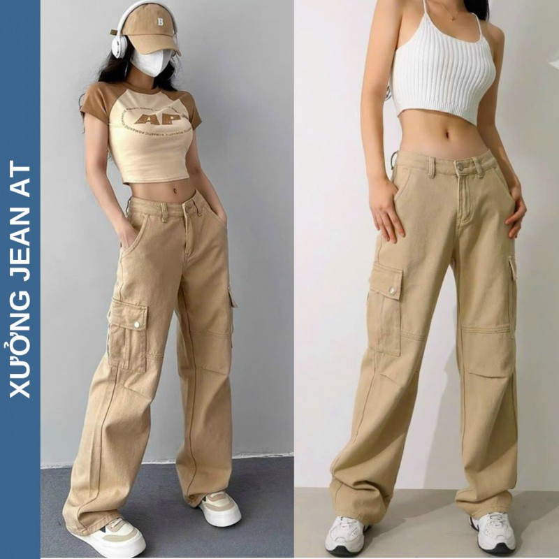 HƯỚNG DẪN MUA HÀNG : Quần Kaki Nữ Ống Rộng Lưng Cao 2 Túi Hộp Cực Cá Tính Màu Kem Form Trơn Nam Nữ Unisex 570.2