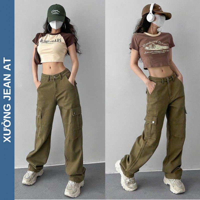 HƯỚNG DẪN MUA HÀNG : Quần Kaki Nữ Ống Rộng Lưng Cao 2 Túi Hộp Cực Cá Tính Màu Rêu Form Trơn Nam Nữ Unisex 570.3